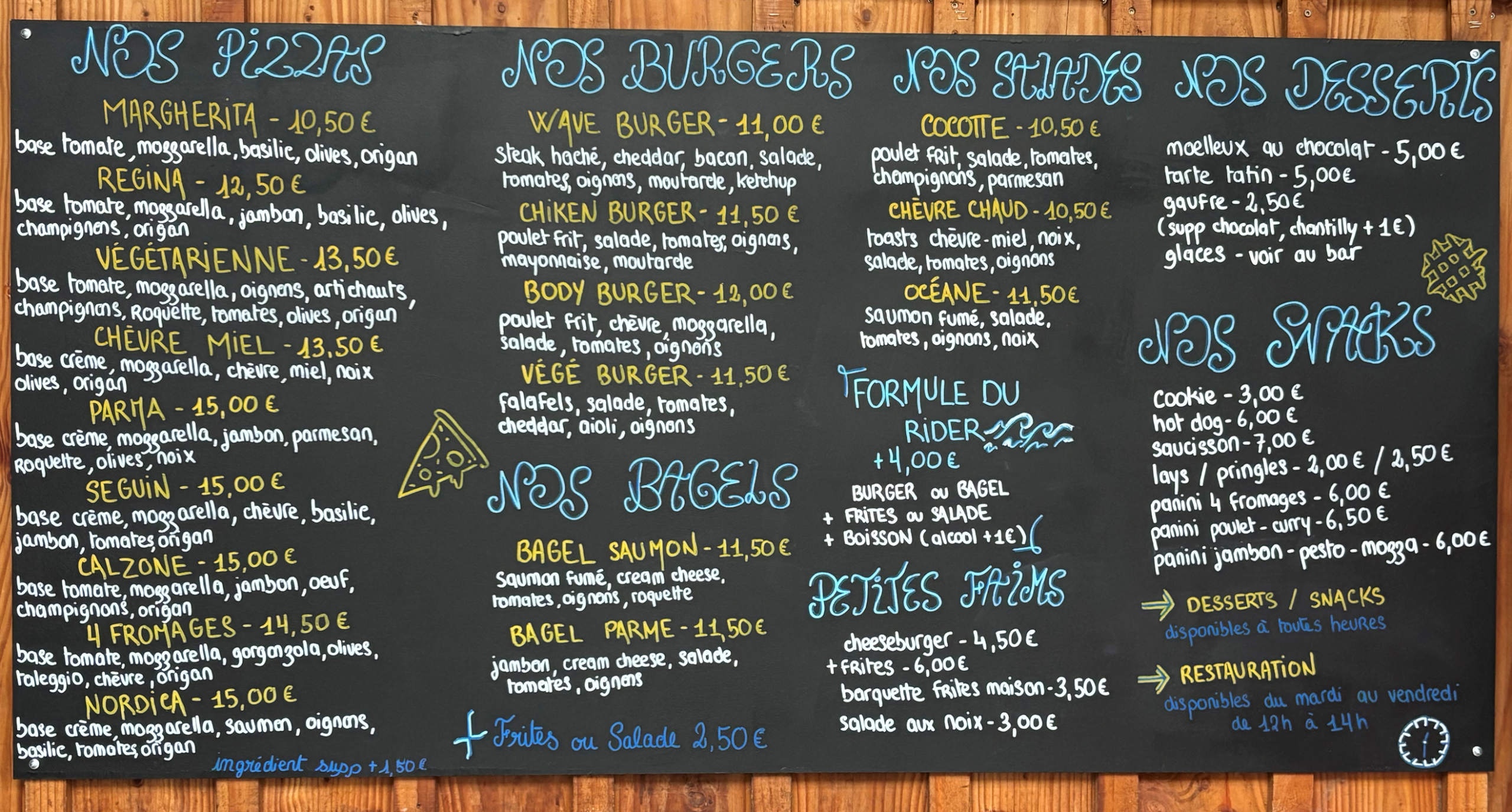 Nous cuisinons sur place et notre pâte à pizza est faite maison.